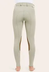 The Gracie breech from RJ Classics features a midrise fit with a comfort stretch waist band and tummy control pockets. Made from quick dry stretch materials with Clarino knee patches and mesh lower leg panels. Regular length. Sand color.