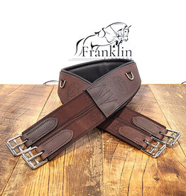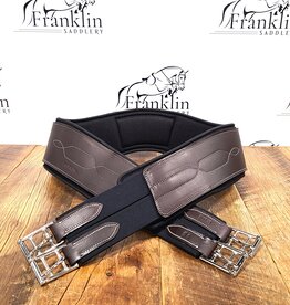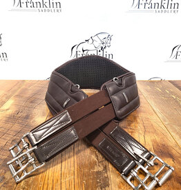 This leather girth from EquiFit offers great protection while jumping. It's T-foam liner is comfortable and conforms to a horse's shape while the soft plush ultrawool wicks away moisture. Double eastic ends. Buckle loop and 3 D-rings. Dark brown, 48".