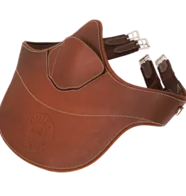 Butet's Classic Asymmetric Girth in Gold or Cachou leather. Available in 48", 50", 52", and 54".